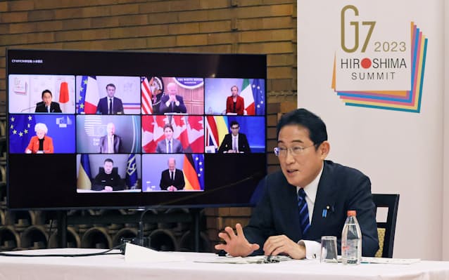 ロシアへの武器提供を検討している可能性がある中国を念頭に、第三国のロシア支援の停止も訴えた。オンライン会議は岸田文雄首相が今年のG7議長国として初めて主催した。ウクライナのゼレンスキー大統領も参加した。