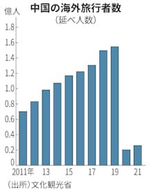 経済成長に伴い、中国の海外旅行者は19年まで拡大が続き、受け入れ国に大きな経済効果をもたらした。ただコロナ禍の20〜21年は中国が出国を制限し、2千万人台に落ち込んでいた。